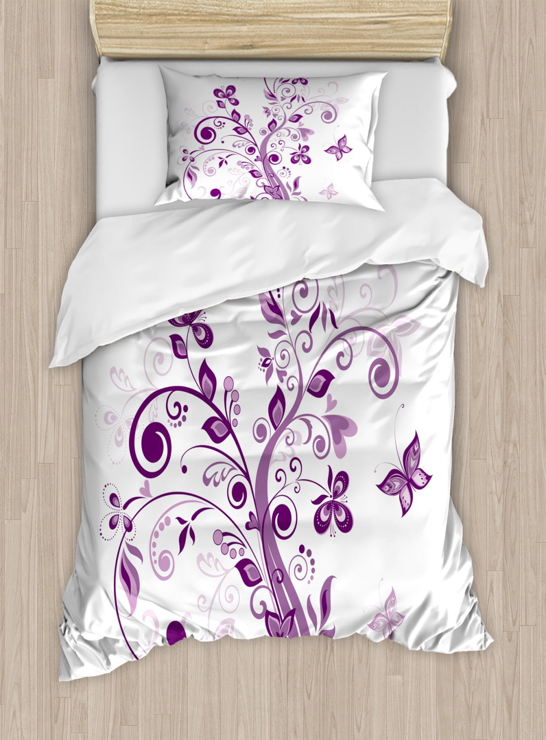 Mauve Twin Size Duvet Cover Set Tree With Swirled Branches And Flowers Leaf Butterfly Bridal Inspirations Theme Decorative 2 Piece Bedding Set With 1 Pillow Sham Purple White By Ambesonne Walmart Com