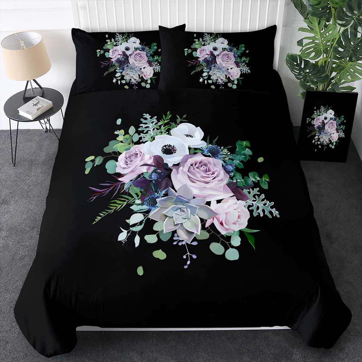 Dusty Rose Duvet Cover Set Twin Size Purple Mauve Flowers Bedding Succulent Pattern Printed On Black Comforter Cover With 2 Pillow Cases For Girls Women And Teenagers Walmart Canada